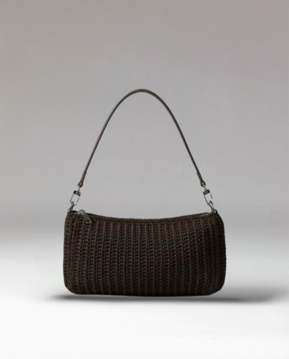 It is crocheted by hand and crafted from our own-made stain waxed cotton yarn featuring a full grained leather strap.